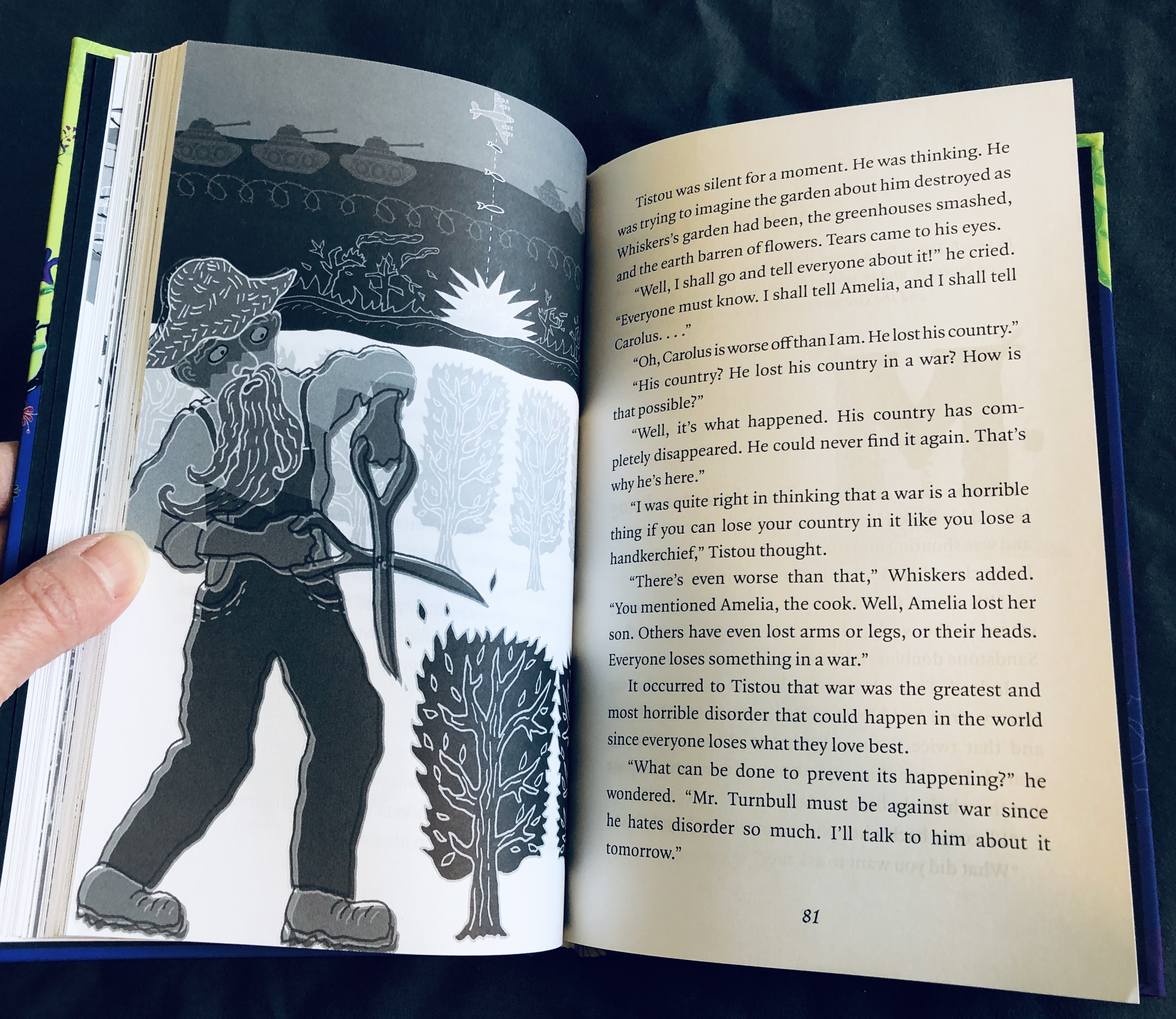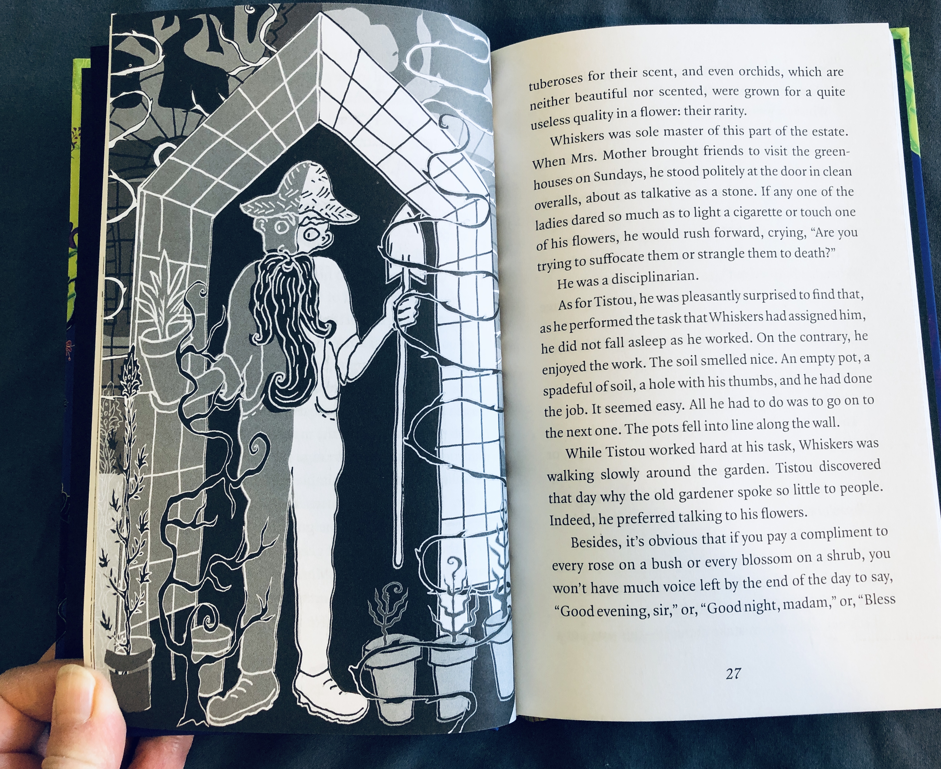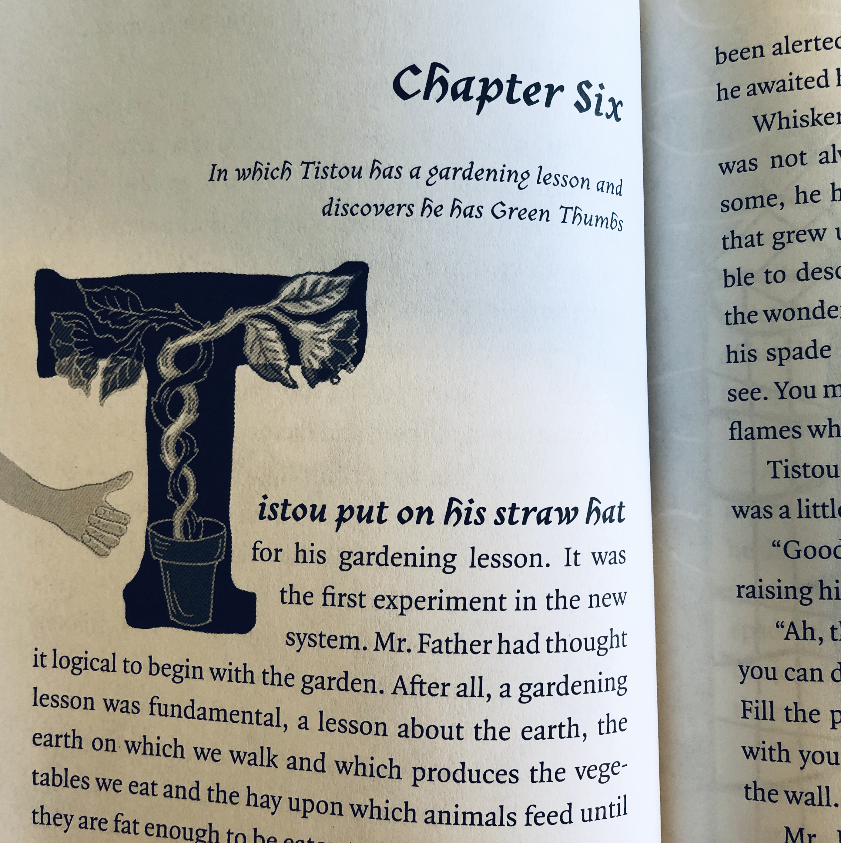 About Tistou: When eight-year-old Tistou is sent home from school, his parents decide that he wall learn from real life instead, and where better to start than gardening? With Whiskers the dreamy gardener, Tistou discovers a remarkable gift—that he has green thumbs! Everything he touches sprouts beautiful plants. Now Tistou has lots to do. With the power of flowers, he can change everything—prisons, slums, hospitals…even war.